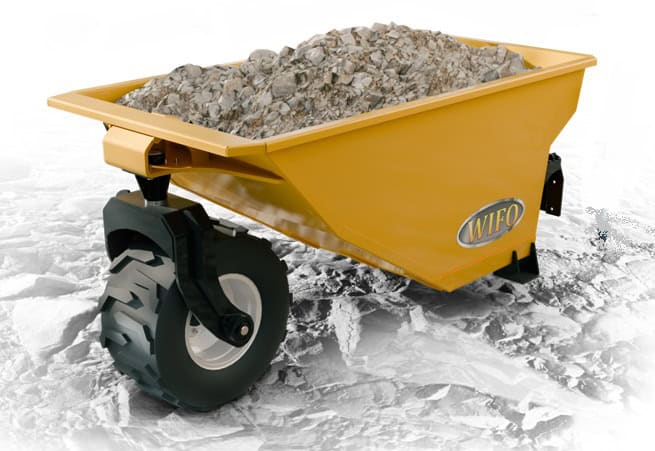 The DW51QT Mini Trailer Dumper is a cost-effective solution for landscapers to easily move fill and debris through narrow openings and tight spaces. The QT Mini Dumper model uses a mini skidsteer adapter to easily towed by your mini skidsteer. Powered by the auxiliary hydraulics from your carrier, this model is low maintenance and efficient. With a ground clearance of 7.25 inches, this model has a heaped bucket capacity of 1.2 Yard (0.93 m). DW51QT Mini Dumper is built with a heavy duty ¼” thick steel dump bucket and has 18-inch tires. The unit comes standard with a spare tire.