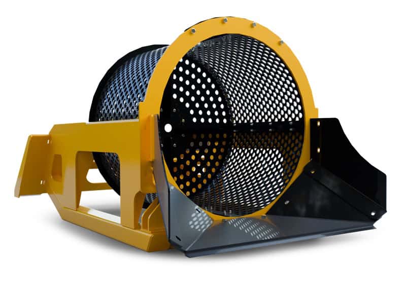 > Interchangeable Screens: 1″ (standard), 3/4″, 1.25″, 1.5″ 1.75″, 2″, 2.25″ Optional > Quick Change Mount – fits most skidsteers > Does not require high flow, thus most skidsteers can be used > Weight: 600 lbs